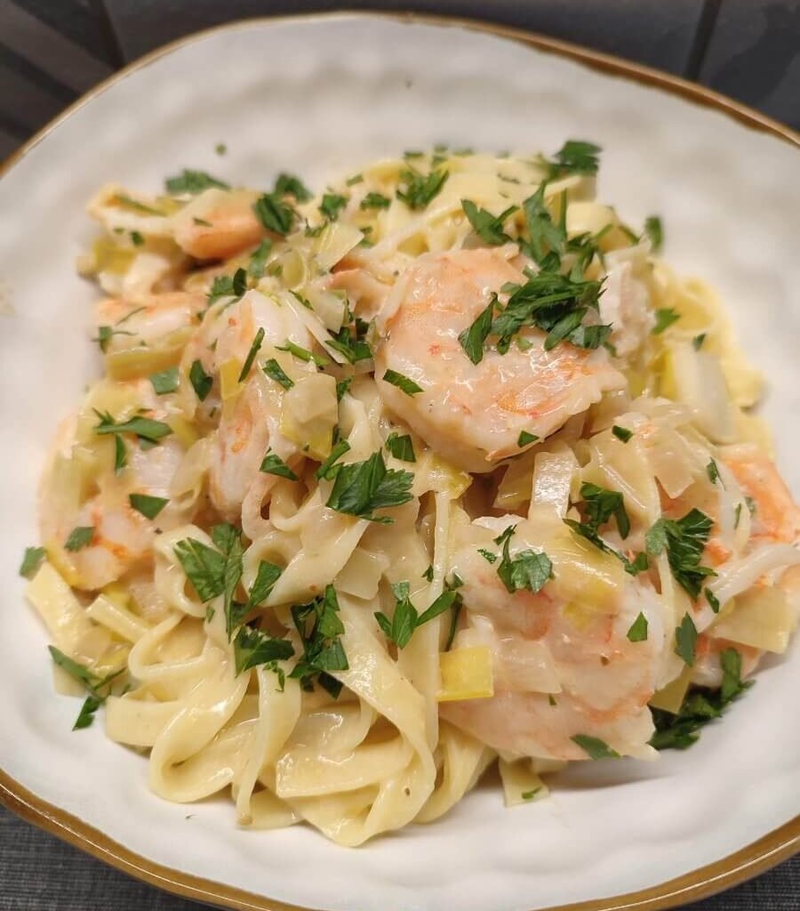 Pasta scampi in preiroomsaus