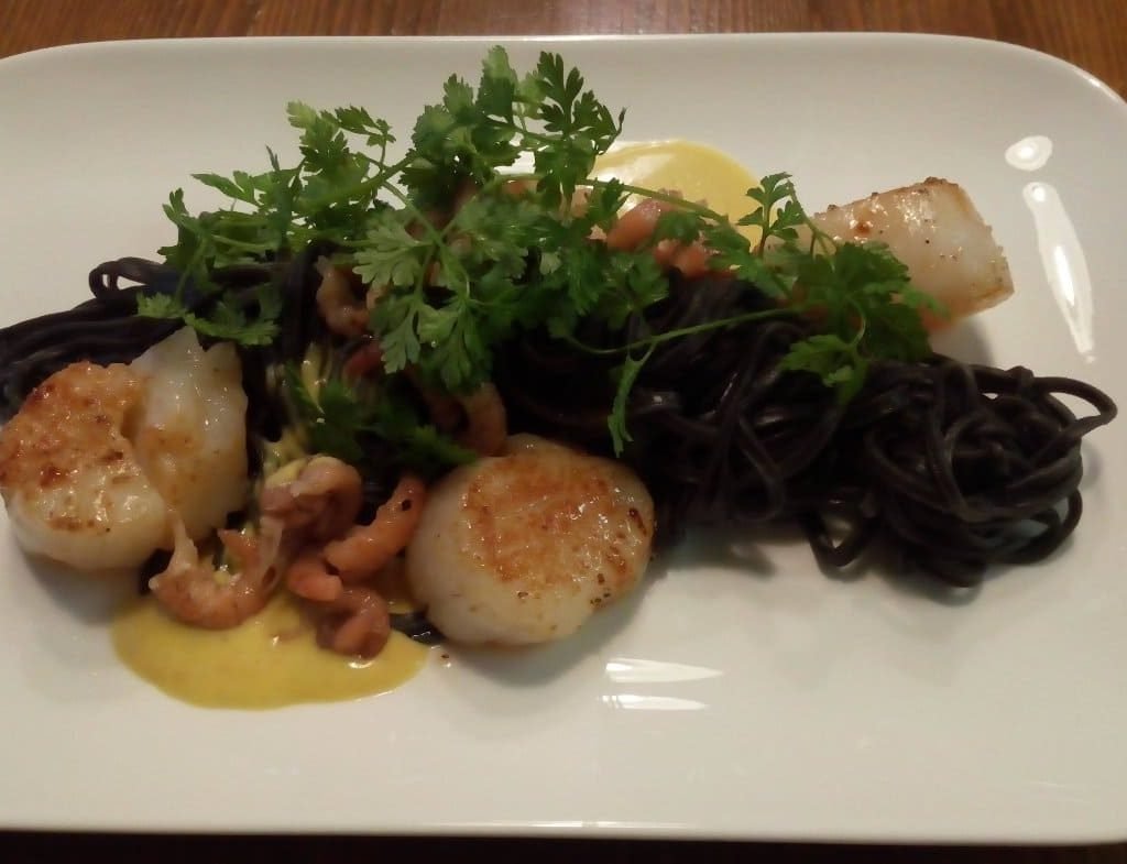 Zwarte pasta met Sint-Jacobsvruchten en kerriesaus
