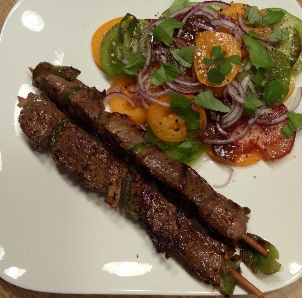 Rundssaté met kleurrijke tomaatjes