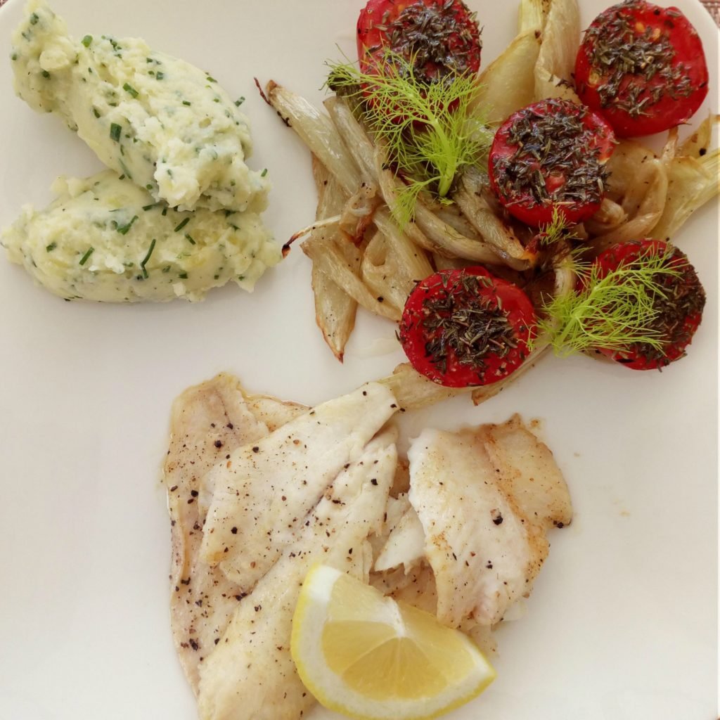 Tongfilets met venkel, tomaatjes en bieslookpuree