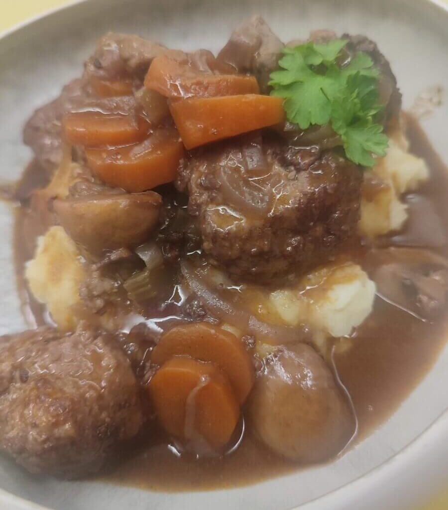 Winterse gehaktballetjes in rode wijn