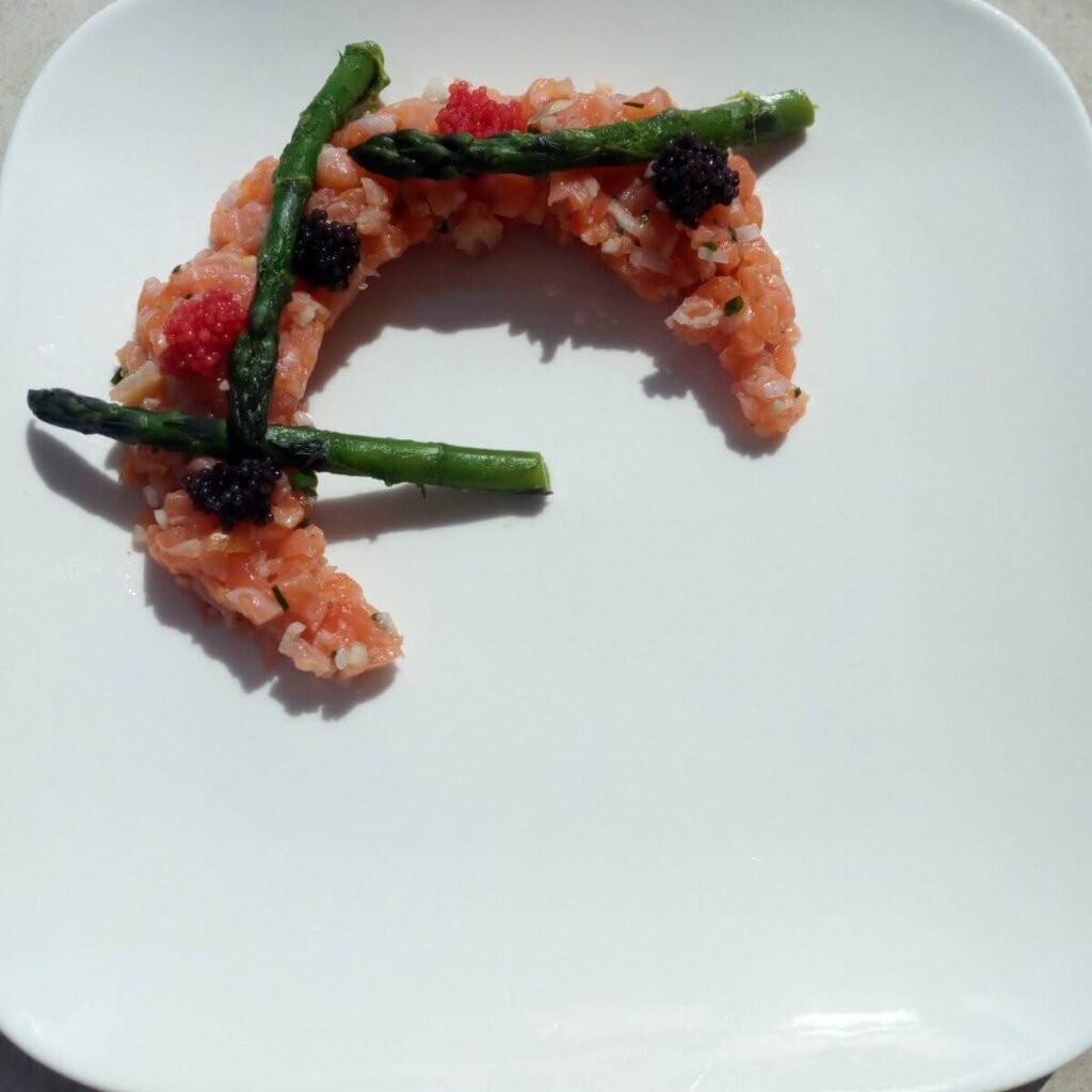 Gemarineerde lamskroon, gebakken slaharten, tomaatjes met mozzarella en hasselbackaardappelen