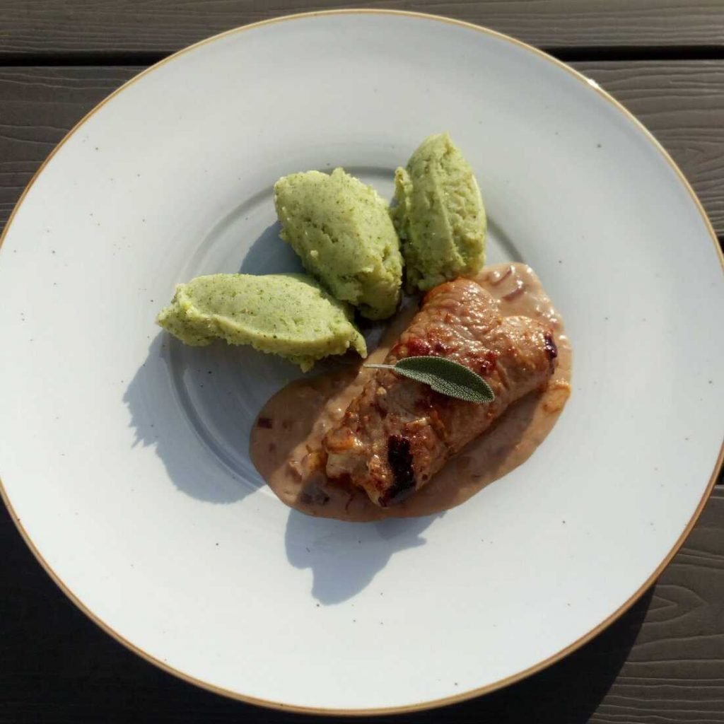 Kippenvinken in romige champignonsaus met pasta/paupiettes de poulet