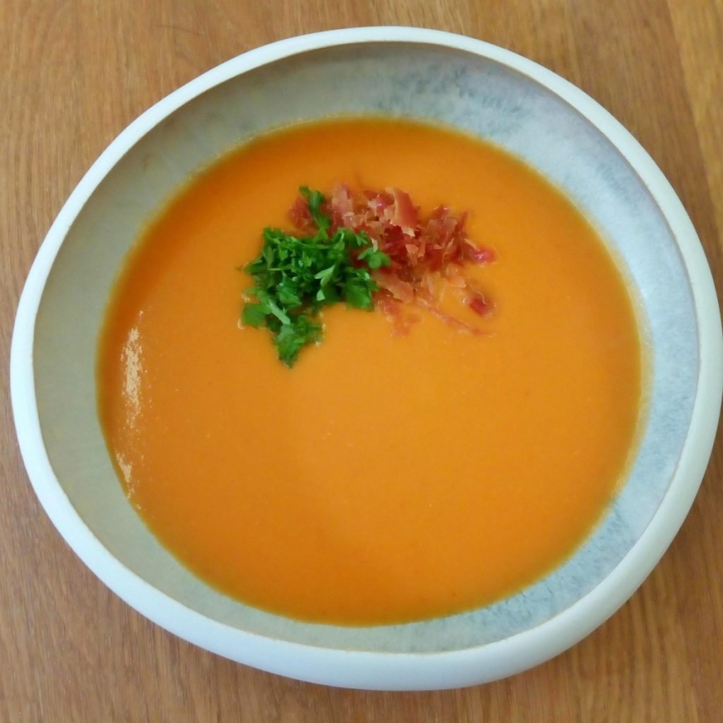 Pompoen paprika soepje met pancetta