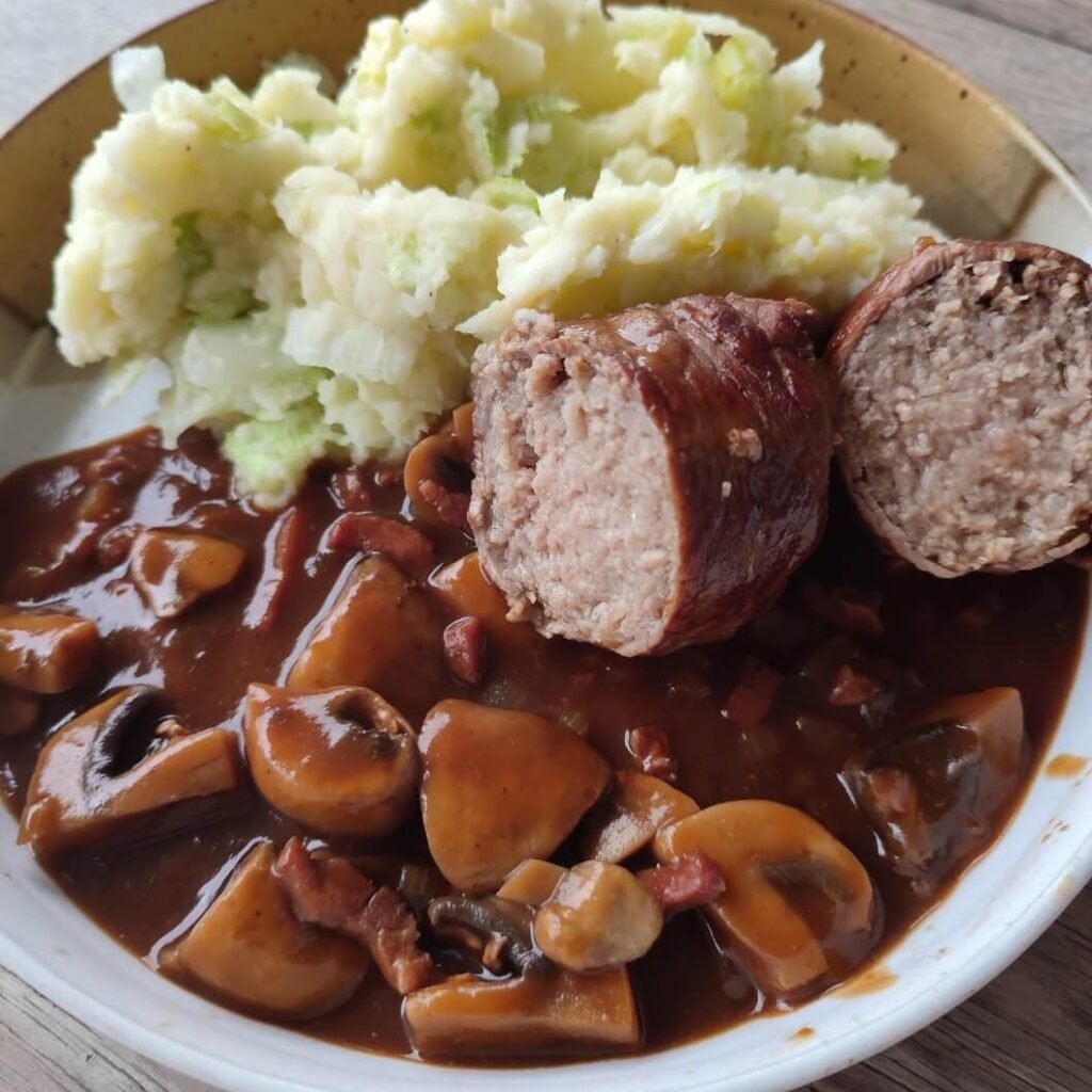 Blinde vinken met champignons en sla-puree