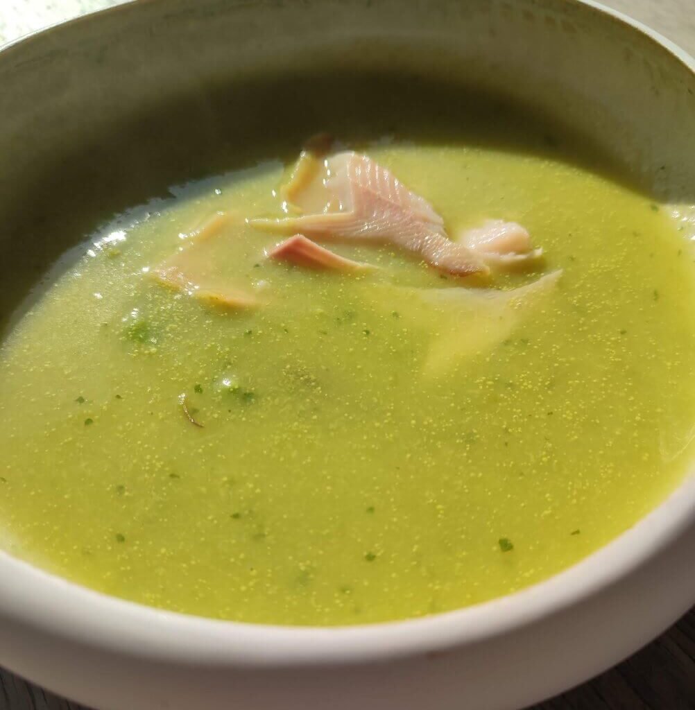 Groene aspergesoep met gerookte forel