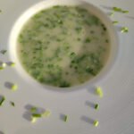 Wanneer je deze soep in de lente maakt, wanneer er mooie paarse bloemetjes aan de bieslook staan, gebruik deze dan als afwerking voor de soep. Dit oogt zeer mooi.