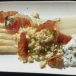 Asperges met yoghurtsaus, ei en gedroogde ham