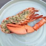 - Besmeer de twee kreefthelften royaal met de kruidenboter.