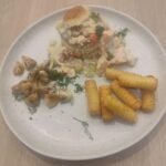 6. Voeg als allerlaatste de vis toe en laat afgedekt eventjes garen, roer niet te veel zodat de vis mooi heel blijft.